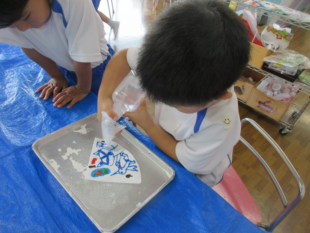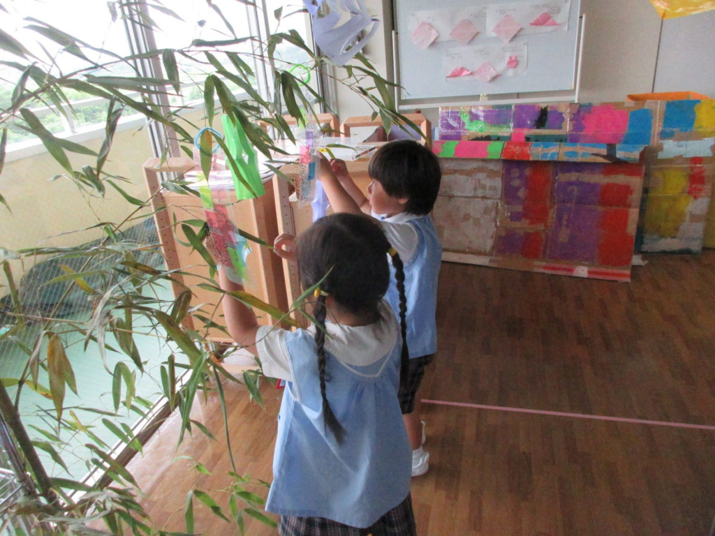 7月7日は🎋七夕の行事がありましたね🌟つぼみ組の子どもたちは、絵本や教師の話を通して”七夕”の行事を知ることができ、製作も楽しんでいました短冊の色付けをするのに”マーブリング”をしました!子どもたちは恐る恐るスプーンでインクを混ぜ合わせ、上か... -