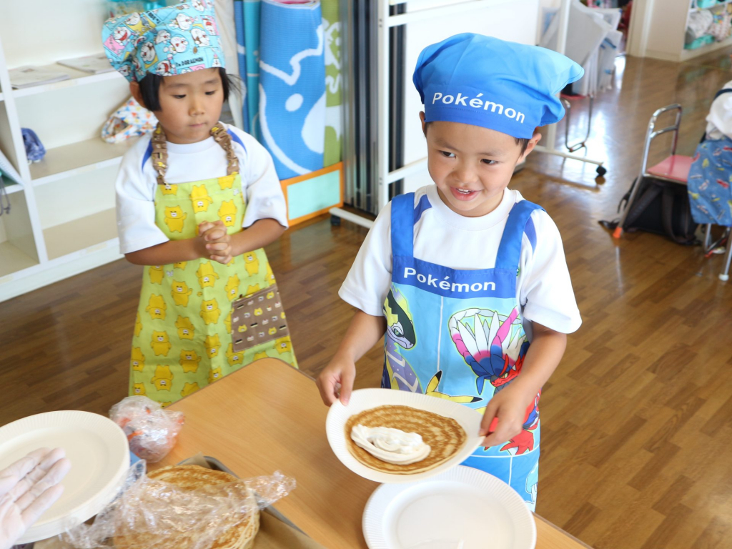 年中組では様々なあそびの中で子どもたちが興味を持って遊んできたあそびが集まり、完成していった『いろいろらんど』その中のひとつに「アイス・クレープ屋さん」がありました。たくさん遊んできたあそびの締めの一つとしてクレープを作ることになりまし... -
