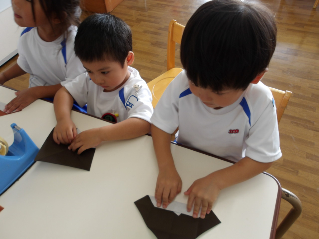 つぼみ組では、初めて折り紙を使った製作を行いました😊今まで、折り紙をちぎったり、貼ったり…という活動は行っていましたが、折る活動は初めての子どもたち。今回は秋の季節にちなんで、どんぐりを折って作りました✨最初は「難しいな…」「次、どうやって... -